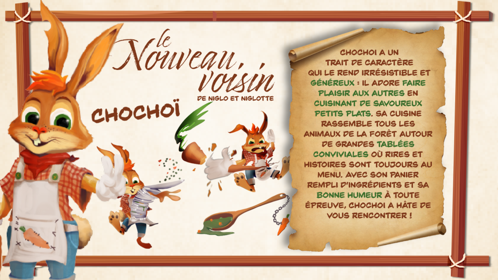 Sa mascotte, un lapin nommé Choïchoï, rejoindra la grande famille des amis de Niglo et accompagnera petits et grands dans un décor minutieusement travaillé. Racines géantes, galeries creusées et matériaux volontairement disproportionnés participent à une ambiance cartoon et immersive, dans la continuité de l’univers de la Forêt de Niglo.